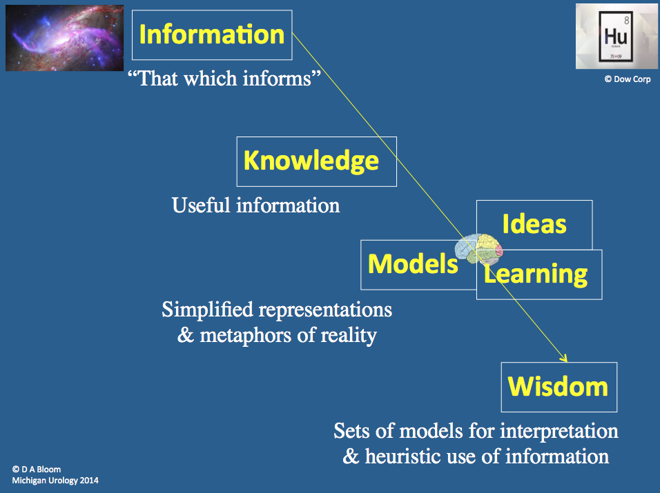 3. Data & information. The positive side of the 2014 ledger to date must include the Second Dow Health Services Research Symposium we held in mid-September. The meeting focused on big data and its implications for health services research. While information may be sensory, narrative, or numeric, it is the numeric information that we call “data.” Big data is the current phrase for data sets too large and complex to manage with simple calculators, tools or traditional data processing applications. Detail about our symposium is beyond the scope of today’s message, so write me if you want a CD of the proceedings. I will come back in future months to the concepts of information and data, but let me cherry-pick a few highlights of the meeting at this time. Stewart Wang presented the amazing morphomics model he built out of big data to manage patients with major traumatic injuries. He also challenged analysts to consider “what is not there” in the data – for example the critical social element behind any information. Jason Owen-Smith explained the importance of social networks to physicians and health care. John Ayanian discussed big data in health care reform. Charles Friedman talked about “learning health systems” and analyzed the Panama Canal as a complex project requiring many forms of data integration including that of social factors, political forces, and infectious diseases. He highlighted Dr. William Gorgas, the chief sanitation officer on the canal project, as the hero of the infectious disease mitigation necessary for success. Craig Sincock, CEO of Avfuel Corporation here in Ann Arbor, showed that a passionate human element is necessary to translate data and ideas into excellent execution of any job, or in the larger success of any business or organization. He explained how context counts; no one can know everything and a team with a diverse crowd of talents on board is able to solve problems far better than a team consisting only of a single set of skills and world-views. Caprice Greenberg spoke about models of learning and new concepts of experiential “student-driven” learning for surgeons to make personal progress on the “asymptotic curve of mastery” (Daniel Pink’s metaphor). While we are focused intensely on data, and big data is a current favorite bit of jargon on the center stage, it is only its interpretation and utility to the human element that gives it meaning and makes it matter. As Craig Sincock told us, and as his company Avfuel proves, it takes enthusiasm and passion to parlay data into meaningful and great results. The symposium was superb, so feel free to take me up on the offer of a CD.
