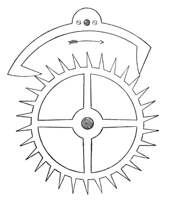 [Top piece is the anchor, the bottom is the escape wheel. From George Henry Abbott Abbott’s American Watchmaker and Jeweller, Hazlitt & Co. Chicago. Fig 5, p.19. 1898. Google Books]