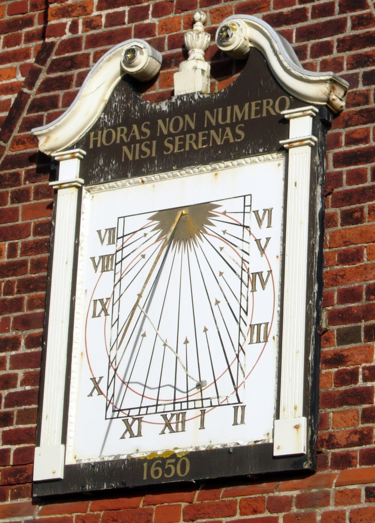 [Above: calendar, ancient Egypt, Karnak Temple. Below: clock, sundial type, Suffolk England Moot Hall. Neither of these was easily carried.]