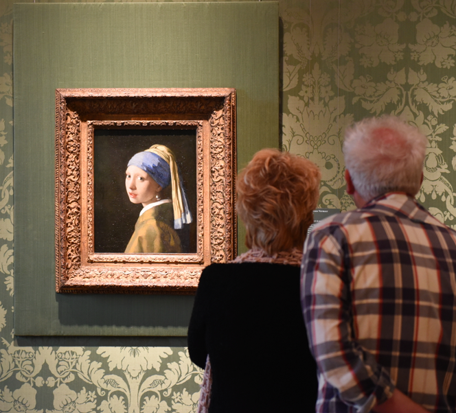 [Girl with Pearl Earing, Vermeer, c. 1665, & viewers at Mauritius Museum, The Hague]