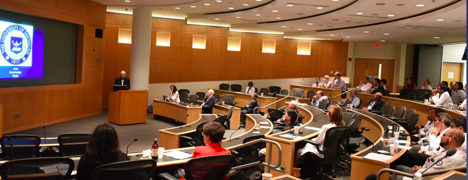 New Perspectives. Visiting professors bring different perspectives and last month the Department of Urology initiated its new academic season with several superb visitors. Distinguished pediatric surgeon Don Nakayama gave our 10th annual Chang Lecture on Art and Medicine on the Diego Rivera Detroit Industry Murals. [Below: full house for Nakayama at Ford Auditorium]