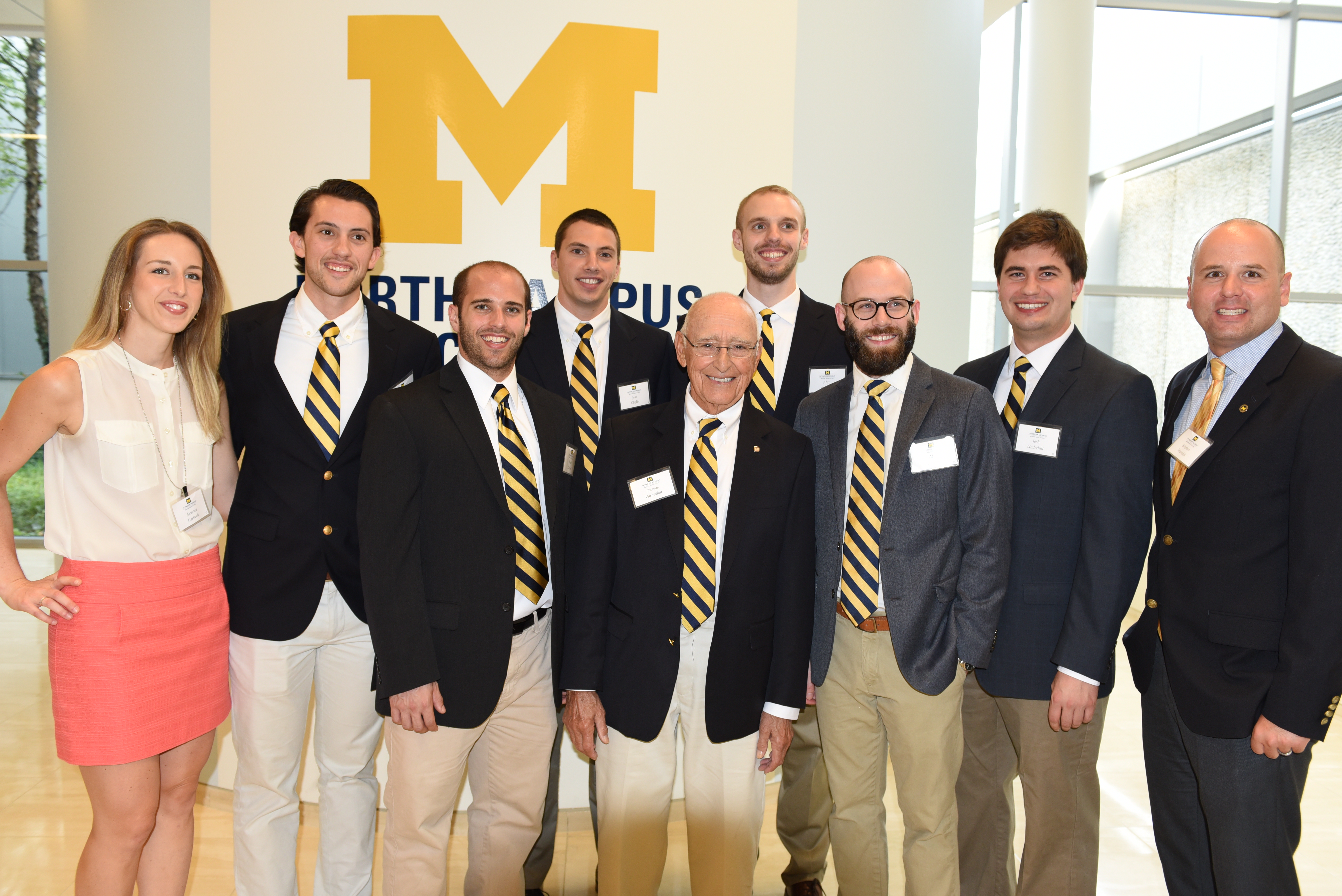 Inspiring Discovery was a celebration at North Campus Research Center focusing on partnerships with donors that fuel education and research. Tom Varbedian, distinguished Michigan alumnus, friend of our department, and retired ophthalmologist was among those honored, in his instance for support of medical students. He has funded 14 students over the years and 4 “Varbedian scholars” are presently here in medical school. [Below: Tom and some of his students]