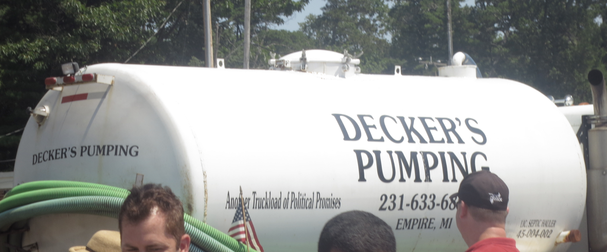 [A cautionary slogan for politicians: Glen Arbor Fourth of July Parade, 2012 – Decker’s septic pumping truck with slogan: “another truckload of political promises.”]