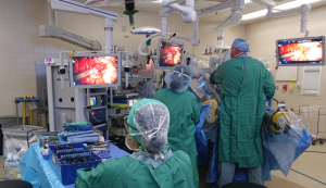 The work of physicians changed since I took that same step in 1980, moving from residency at UCLA to a staff position at Walter Reed Army Medical Center in Washington DC. My practice, like that of any urologist then, was spent mainly one on one with patients in clinics, at bedsides, or in operating room teams. Today, however, clinicians spend as much time focused on computers and keyboards as directly interacting with patients. A recent paper in Health Affairs demonstrates the tyranny of the modern electronic medical record demanding equivalent parcels of physician time spent at computers as facing patients. [Ming Tai-Seale et. al. Electronic Health Record Logs indicate that physicians split time evenly between seeing patients and desktop medicine. Health Affairs. 36:655-662, 2017] Computer interfaces proliferate in operating rooms today, but remain more tools than tyrants, although the imagery is ironic.