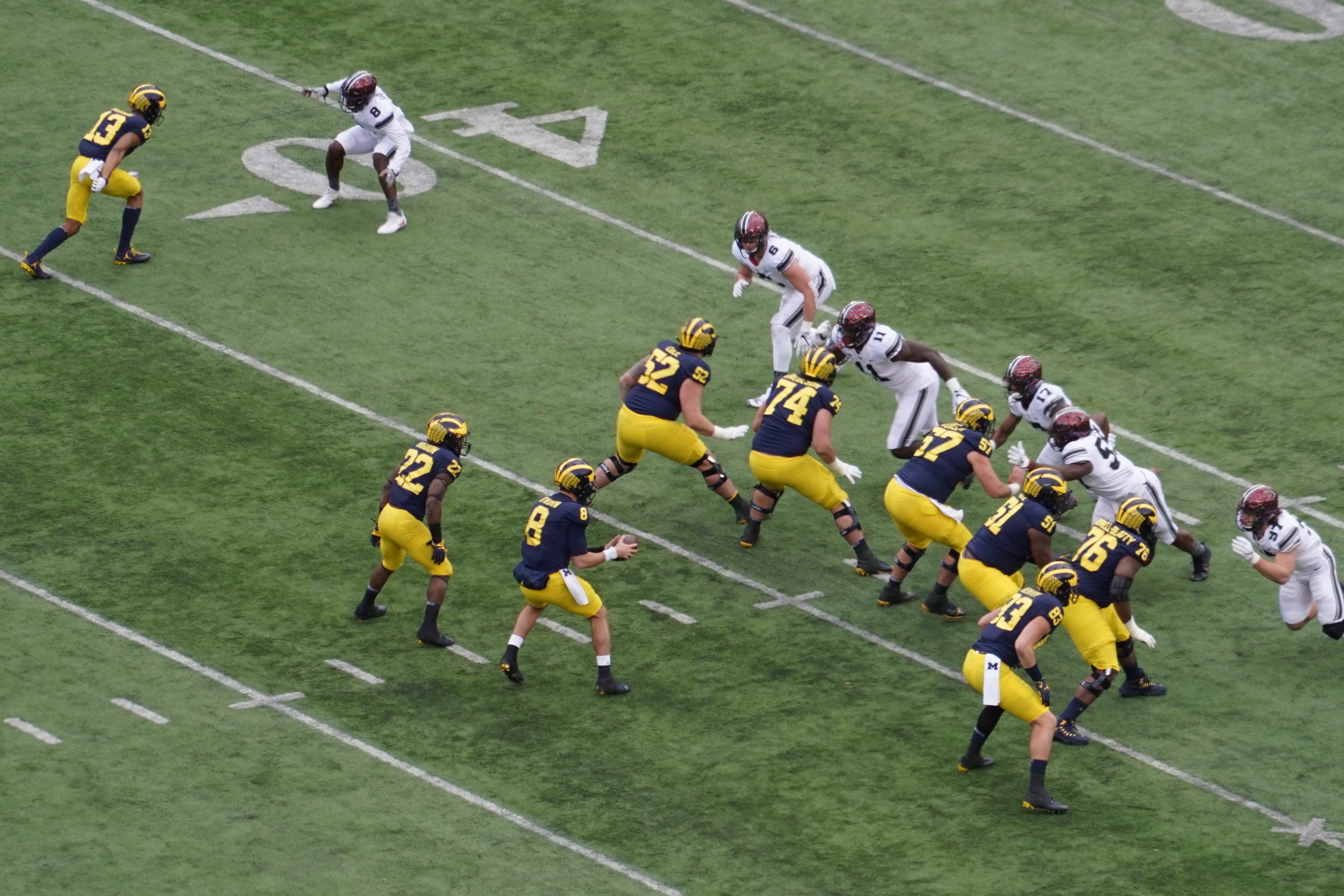 Biology shows that humans are not unique in this capacity of interrogation, even microorganisms react and respond to their microenvironments and communicate among themselves. All biologic creatures interrogate their moments, but our species has learned to do this very well and pass along observations for future generations to consider. We do this unwittingly by epigenetic management of our DNA and purposefully through our ideas, our culture, our objects, our written language, and our sports, as seen below in interrogation of the moment by Michigan quarterback John O’Korn during Ohio State game. [From Sincock Suite. November 25, 2017. Sony 24-240 FE]