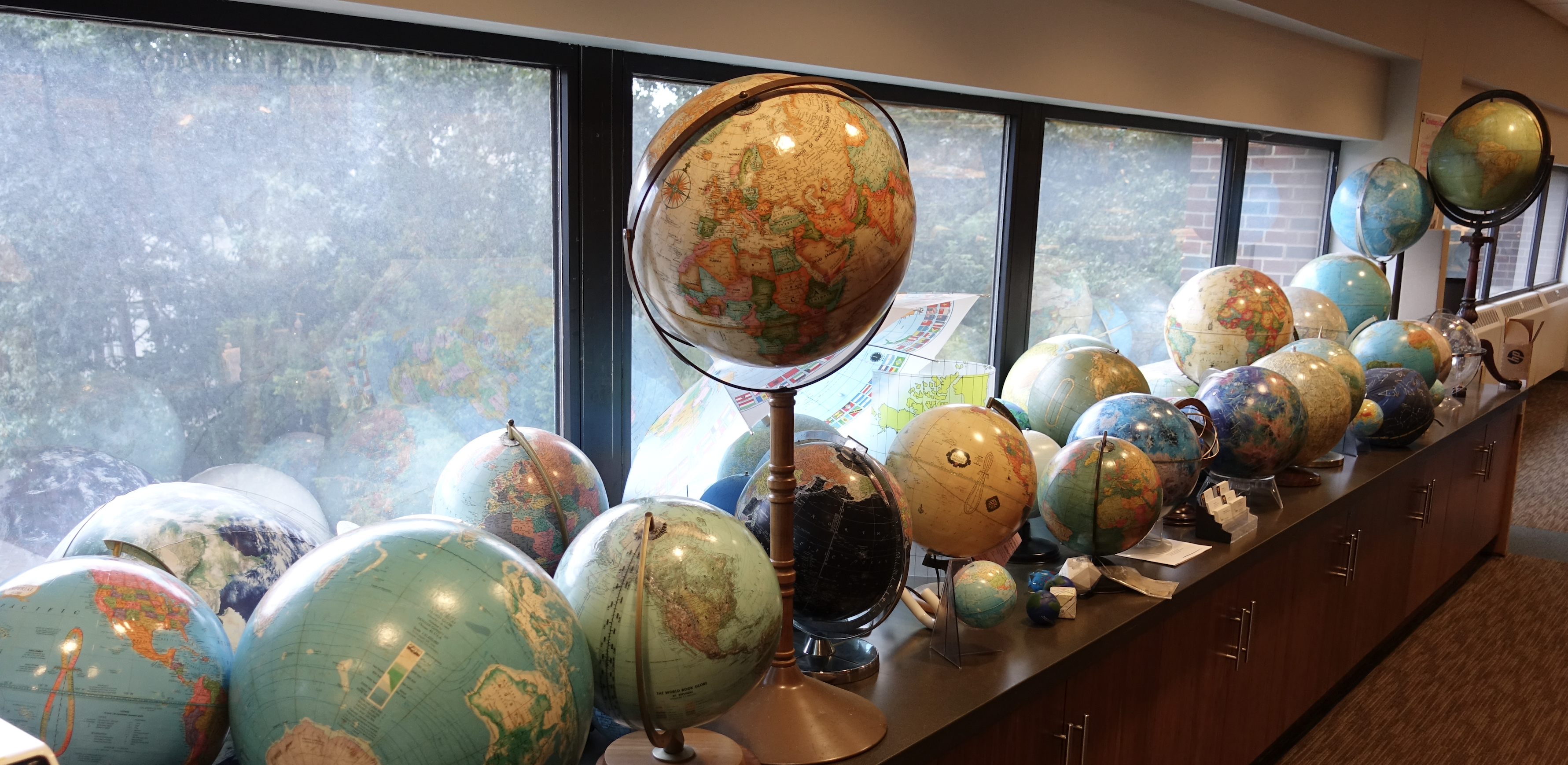 Dividing human moments into calendar years, we “start fresh” each new year with renewed opportunities to explore the world intellectually and geographically. The globe of the Earth is a tool and metaphor for human exploration as well as a visual remonstration to the “Flat Earth Society.” The globes shown above are displayed in a hallway in the Harlan Hatcher Library. If you work here at the University of Michigan or even if you don’t, but happen to be in Ann Arbor and want to explore the campus, “check it out,” when you have time.