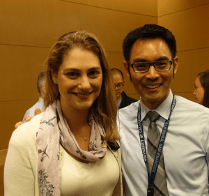Visiting another peninsula. I was guest at another great public medical school and urology department that recently celebrated its first centennial, the University of California San Francisco. Our two institutions share many features and a number of Michigan medical students, trainees, and former faculty populate UCSF Urology. Unlike Michigan Medicine, UCSF is physically separate from its parent campus, across the Bay at Berkeley. The UCSF teaching hospital was founded in 1907, the year after the San Francisco Earthquake, and was the first university hospital in the University of California System. Schools of Medicine, Nursing, and Pharmacy co-located with the medical school on Mount Sutro along Parnassus Avenue and, like Michigan, the Parnassus Campus outgrew its geographic limits. While we at Michigan expanded to North Campus, East Ann Arbor Medical Campus, and other sites, USCF is also expanding widely, most notably to its grand new Mission Bay Campus. [Above: UCSF teaching conference with residents and an attentive canine named Peanut. Below: UCSF Assistant Professor Lindsay Hampson, UMMS 2009, next to Professor Kirsten Greene.]