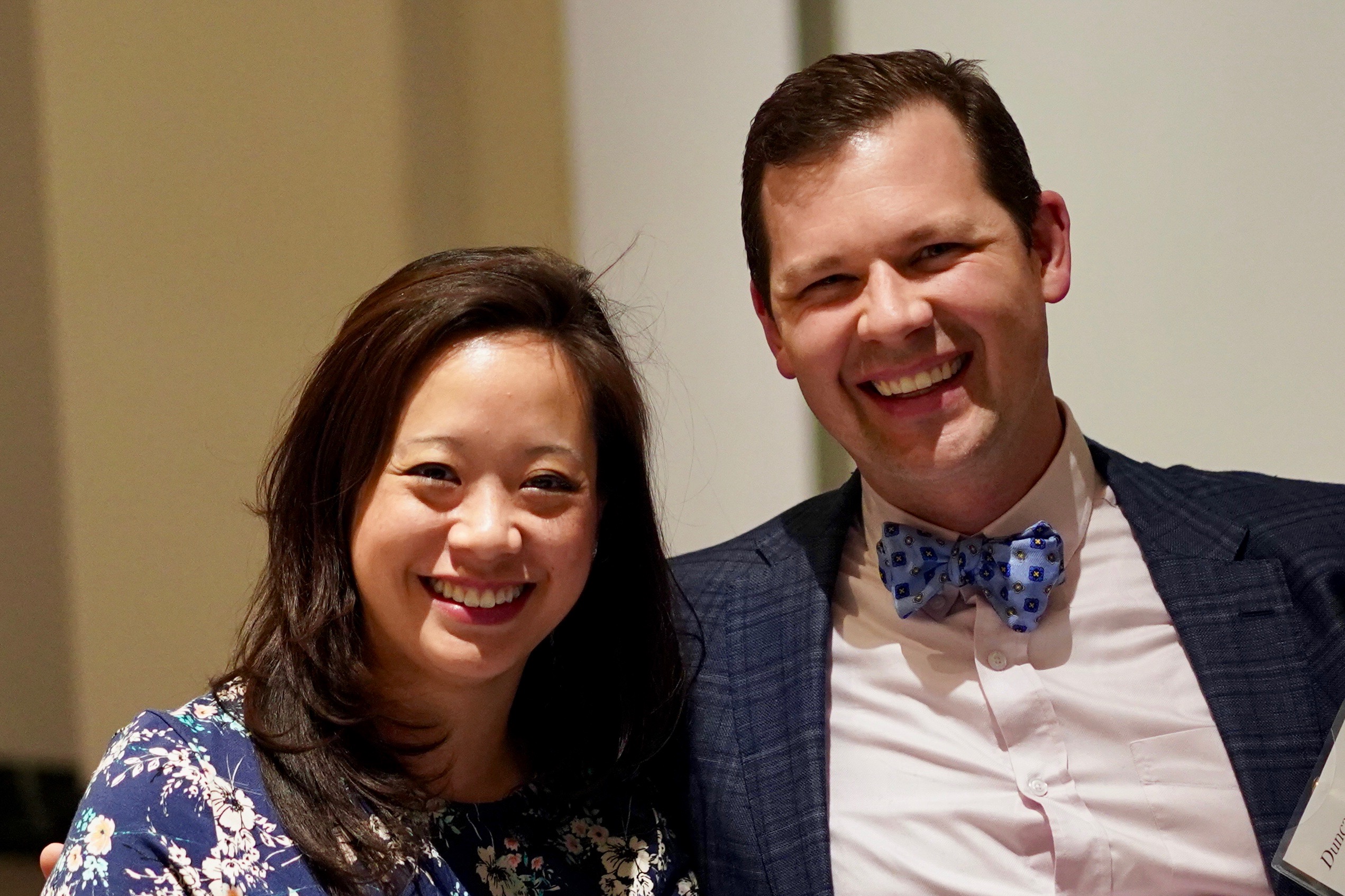 Similar to Michigan, UCSF Urology celebrates graduation of its chief residents and fellows with dinner for families, faculty, and the entire resident cohort. Junior residents gently “roast” selected chiefs, just as we do in Ann Arbor. David Bayne, one of the graduating chiefs, was quoted by roaster Ian Metzler (whom I had met a few years back on the interview trail) as having once said: “Academic medicine is like a pie-eating contest, where the prize is more pie.” [Below: David & Shani Bayne.]