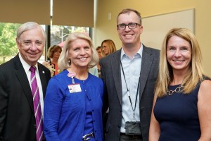 Below: Richard Gilfillan CEO Trinity Heath, Nancy Graebner President & CEO St. Joseph Mercy Chelsea, David Miller, Donna Lasinski Michigan State Rep 52nd District.]