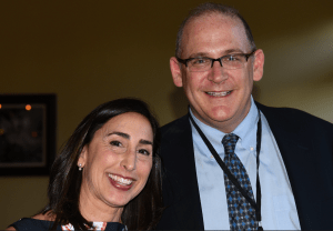 West Shore Urology (WSU) in Muskegon became a part of Michigan Urology only ten months ago and on my visit there last month it was nice to see the Block M logo on the sign in front and on the lab coats of the team. The photos at the front of the clinic show founder Tom Stone and the original partners, along with the current team, although the newest member, Adam Walker, needs to appear on the wall. [Below: clinic wall and Adam & Jaclyn Walker with Malissa Eversole at AUA Nesbit reception, 2018.]