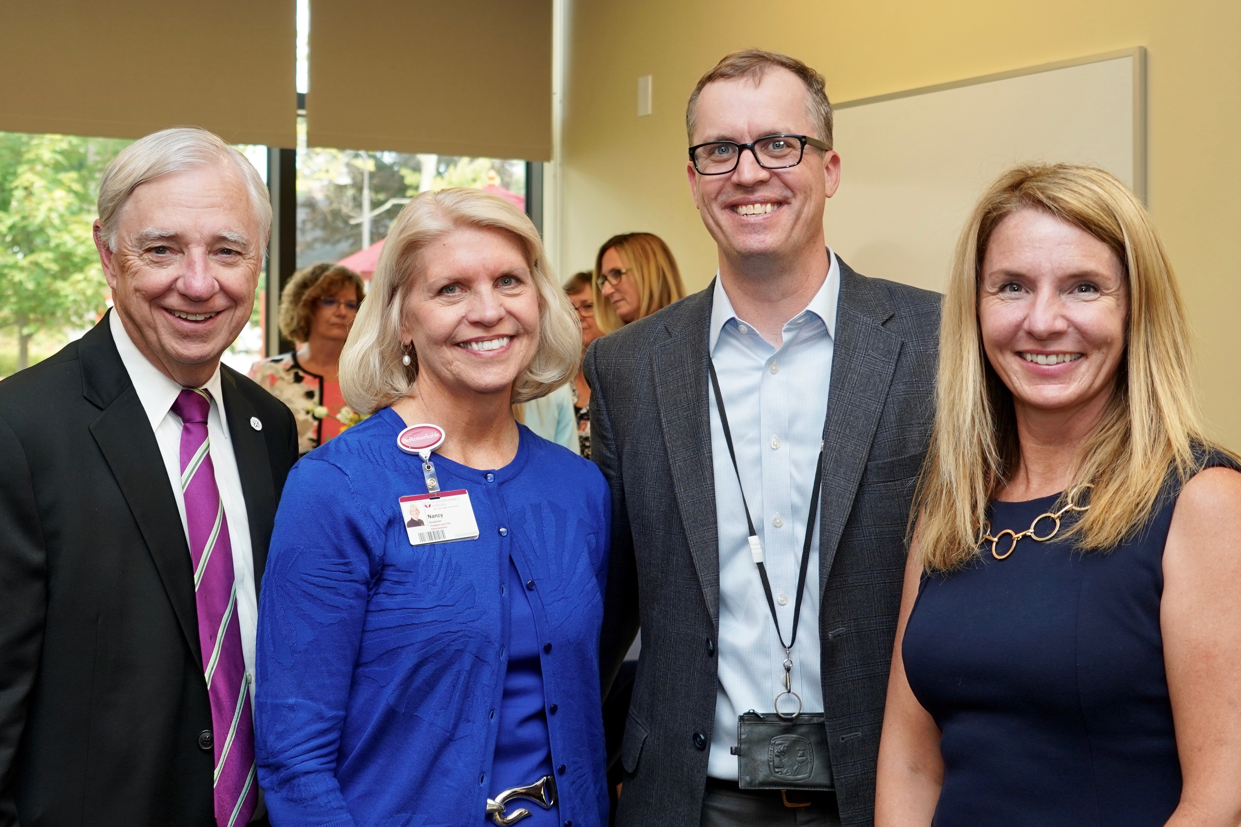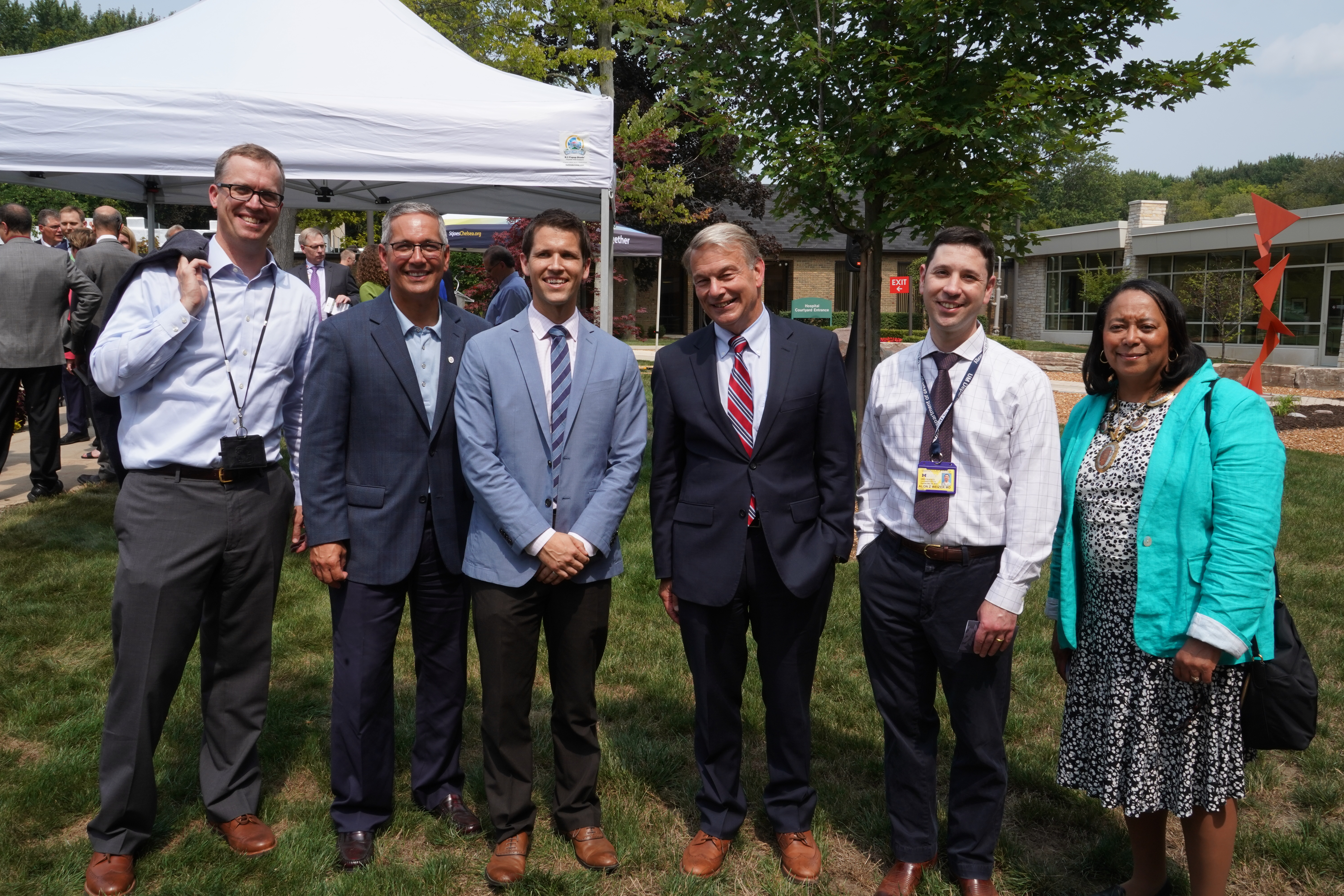 Below: Richard Gilfillan CEO Trinity Heath, Nancy Graebner President & CEO St. Joseph Mercy Chelsea, David Miller, Donna Lasinski Michigan State Rep 52nd District.]
