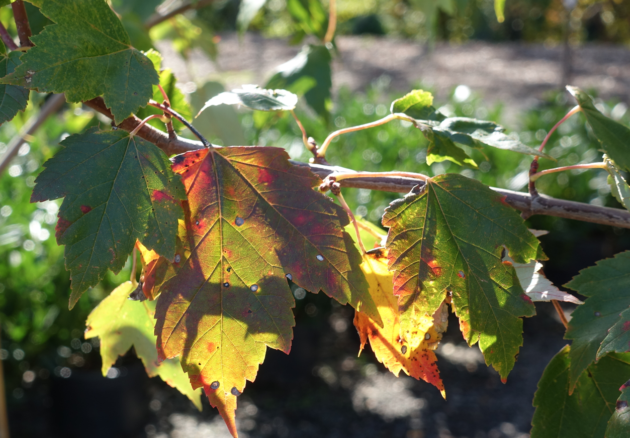 Autumn will transition from the front windshield to the rearview mirror this month, with November showers and Thanksgiving soon to follow. Colorful drives to work on Huron Drive, shown above a few weeks ago, are already memories as another seasonal foliage falls away and biological preparations begin for next season. [Below: back yard, October.]