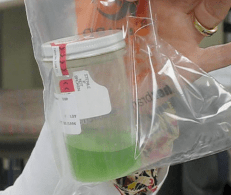 This sample below from my clinic a few years ago was oddly green, but I failed to make note of the cause. Color still matters in modern urinalysis although, since matulas gave way to microscopy and chemical analysis, physicians rarely demand to view urine themselves before it heads to a machine or laboratory.