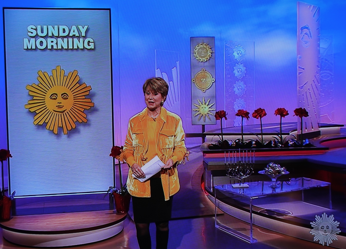 Solar symbols, seen on some national flags, are ubiquitous in the Happy Face, the mother and father of all emoji, designed by commercial artist Harvey Ball in 1963. Charles Kuralt’s Sunday Morning show, launched by CBS News on January 28, 1979, continues to employ a solar disk theme throughout 40 years of reiteration by Charles Osgood and Jane Pauley, remaining a pinnacle of news and civilized commentary as each episode rolls through a set of beautifully curated solar symbols. [Below: Sunday Morning (top) & Authentic Worcester Smiley (bottom).]