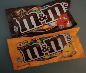 Returning to the U.S. and working with Bruce Murrie, son of Hershey Chocolate’s president, Mars developed their button-shaped variant, patented it on 3 March 1941, and began manufacture that year in New Jersey. M&M derived from Mars and Murrie, with a small “m” stamped on each button. The first big customer was the U.S. Army and during WWII M&Ms were sold exclusively to the military. “Melts in your mouth, not in your hand,” was first used as a tagline in 1949. Peanut M&Ms were introduced in 1954, and the rest is history.