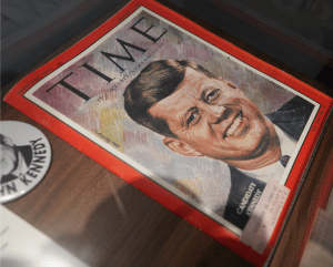 Kennedy had a special linkto the University of Michigan dating from his campaign speech on the steps of the Michigan Union at 2:00 AM on October 23, in 1960 when he proposed the idea of the Peace Corps. The national shock at his assassination only three years later was profound for most people, no matter how they had voted. [Above: Time cover from John F. Kennedy Library, Boston.]