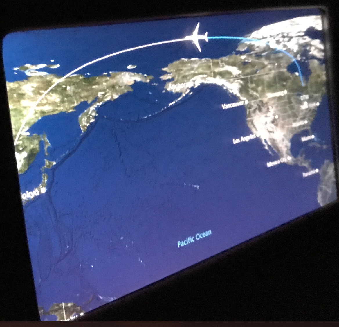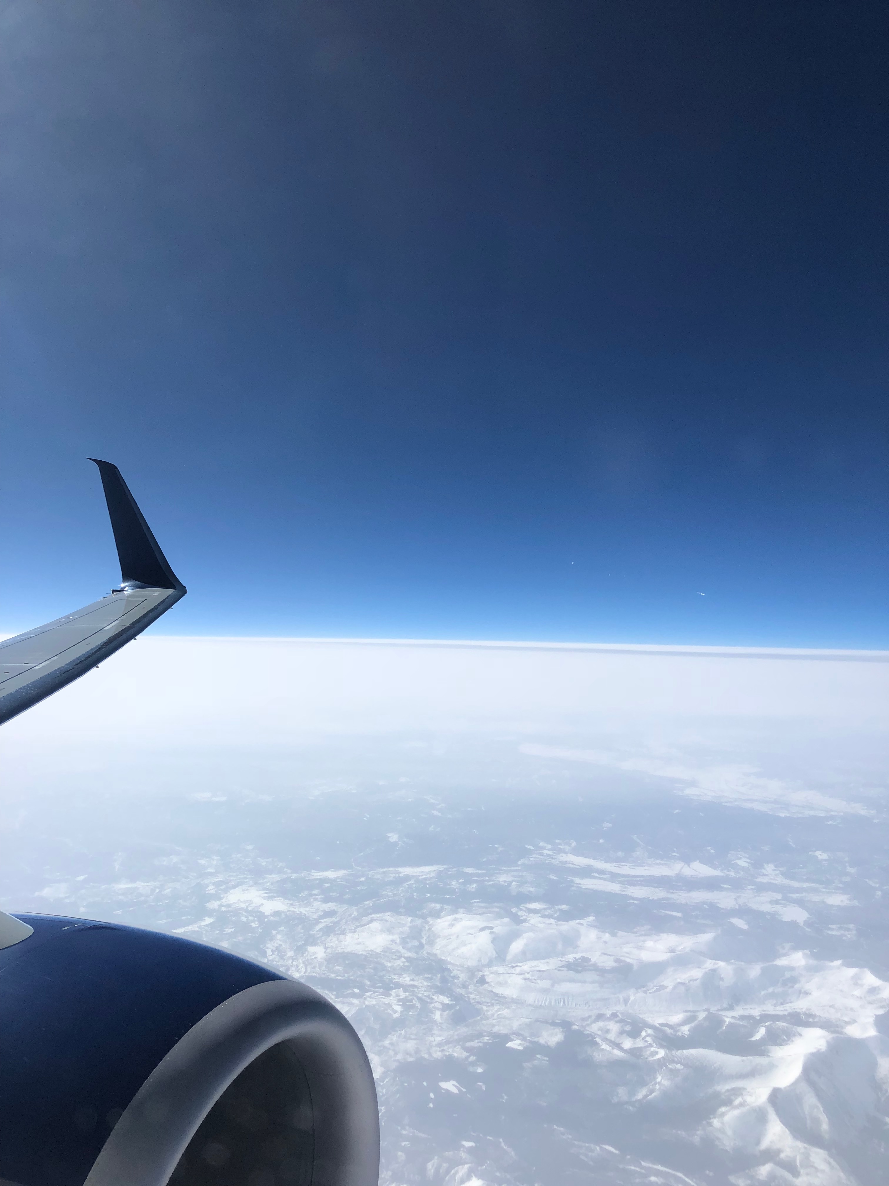 [Below: the subtle arc of the horizon from Portland to Detroit on a Delta Airlines Boeing 737 five miles high.]