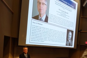 Hugh Cabot, founder of urology at Michigan and man of great certainty, took wide interest in medicine, often crossing epistemological boundaries to study and collaborate outside of his field. Working with pathologists on a paper on gastric cancer in the era of the Nobel controversy, Cabot and fellow faculty member George Adie had published their thoughts on its etiology in 1925, quoting views of their colleague, Aldred Warthin. [H. Cabot and G. C. Adie, “Etiology of Cancer of the Stomach,” Annals of Surgery 82 (1925): 86–108.] William Mayo, another physician with an Ann Arbor connection (UMMS, 1883), was also interested in the topic, writing a lead article in Surgery, Gynecology and Obstetrics in 1912 that discussed treatment from his point of view: “Cancer of the stomach: its surgical cure.” [SG&O, 14 (2): 115-119.] Mayo criticized lengthy diagnostic interludes that allow the disease to progress from “week to week” until by the time a practitioner has absolute certainty of the diagnosis before referring to patient to Rochester, “This is not a case for the surgeon, but for the undertaker.” Mayo concluded: “Cancer of the stomach is the most frequent and most hopeless form of cancer in the human body. Early operation affords the victim the only chance of a cure.” Time and discovery have altered the certainty of those conclusions. Ironically, gastric cancer took Mayo’s life at age 78.