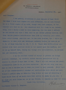 Mrs. Vaughan and I were much pleased to receive your Christmas card. We have often wondered what had become of you, and we have often expressed the wish that we might look down upon Karlsbad, its splendid mountains, and its beautiful walks, many of which awaken in us pleasant memories. We have gone through the dreadful cycline [‘cyclone’], I and my five sons were in the Army, and my oldest son now rests in French soil. I often wonder whether I will ever desire to visit Europe again. However this may be, we remember you with the greatest pleasure, and we send you best wishes, not only for the coming year, but as we hope, for the many years to come. Yours truly, V.C. Vaughan.”