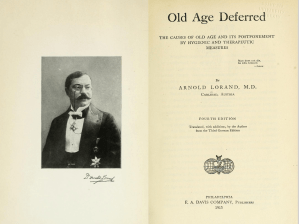 Lorand (1865-1943) was a physician at the Carlsbad Spa, longevity researcher, and pioneer of modern geriatric medicine. His 1911 book, Old Age Deferred, was popular in America and went through a number of printings. [New England Med Gazette, 47:845, 1912.] He was one of many academic friends gained and visited by the Vaughans during their lives, and epistolaries such as Vaughan’s were the common way people kept in touch, taking more time and crafting than today’s phone calls, emails, or texts. [Below: Lorand and 1913 edition of his book.]